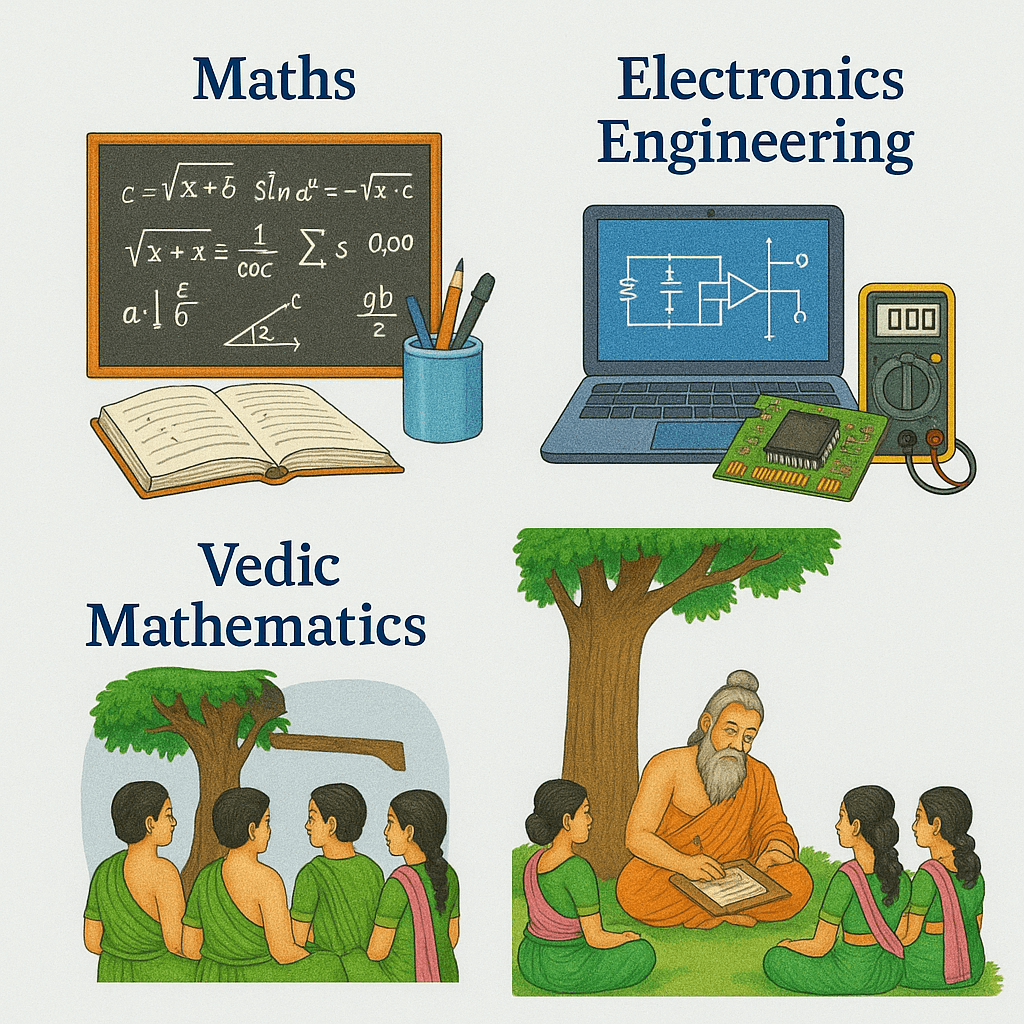 Our Courses Choose the right path — Vedic Mathematics for Computational Speed & Confidence— CBSE Maths for exam mastery. Explore All Courses Expert Mentor IIT alumnus with 10+ yrs experience Structured Learning NCERT + Vedic methods for clarity Flexible Learning Live + Recorded classes Parent Updates Transparent weekly progress Vedic Math Build speed, confidence, and joy in problem solving. From Junior basics to Senior advanced sutras. Junior Course Senior Course CBSE Mathematics Structured programs aligned with NCERT — from Class 10 fundamentals to Class 12 advanced concepts. CBSE 10th Maths CNSE 12th Maths Book a Free Demo Today See our teaching style and decide the best track. Book Free Demo